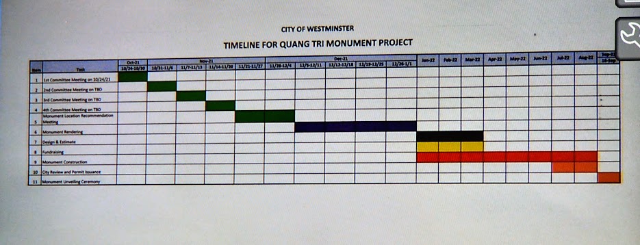 Trên từng bảng danh hiệu của mỗi Ủy viên hiện diện được ghi nhận: Chanh Minh Nguyen, ARVN/Rangers/Biet Dong Quan - Chi Van Tran, Hoi Den Hung - Vice Chair: Tan-Ky Hoang, ARVN/Airborne/Nhay Du - Chair: Paul Sau Van Le, ARVN/Air Force/Khong Quan - Nam Tan, ARVN/Army/ Bo Binh - Ngoc Buu Phan, ARVN/Marine Corps/Thuy Quan Luc Chien - Man Cong Van, Quang Tri Resident/Nguoi Dan Quang Tri - Son Chi Do, ARVN/National Police/Canh Sat Quoc Gia - Robert Harrison, American Veteran Association, U.S. Marine Corps - Quan Hoang Nguyen, ARVN Museum/Vien Bao Tang QLVNCH - Congrad Gomez, U.S. Air Force - AiDinh Nguyen, ARVN/Army/Bo Binh. (Danh sách được ghi nhận tại chỗ)